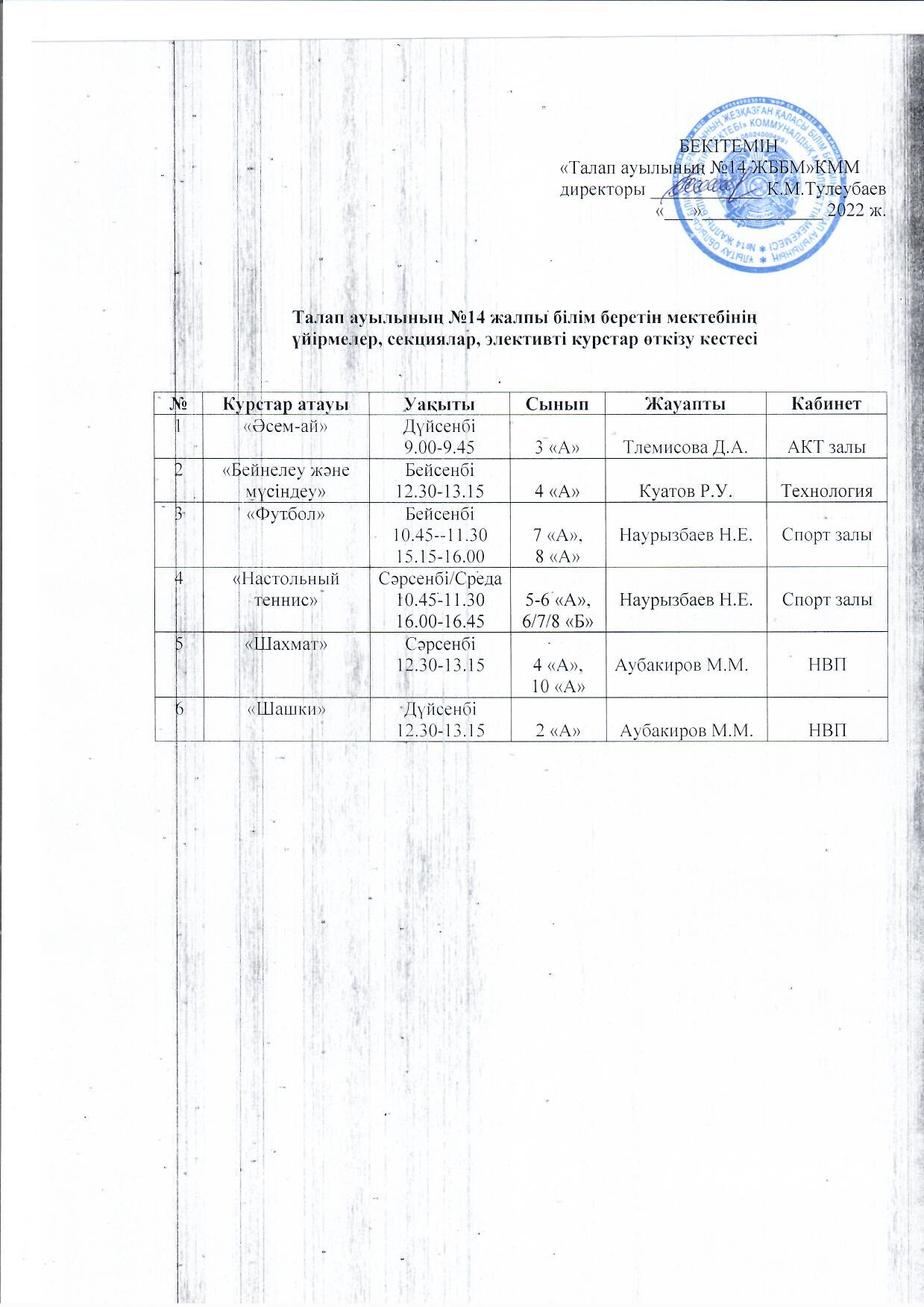 Сабақ кестесі