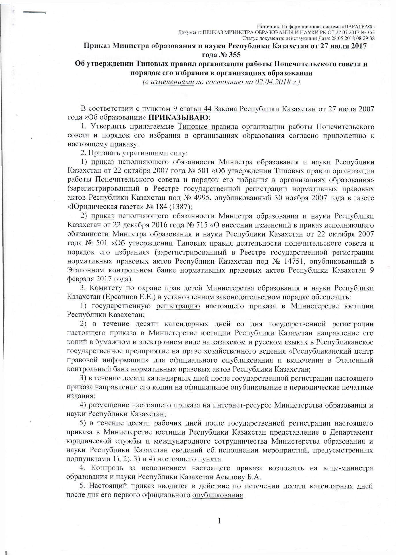 Об утверждении Типовых правил организации работы Попечительского совета и порядок его избрания в организациях образования