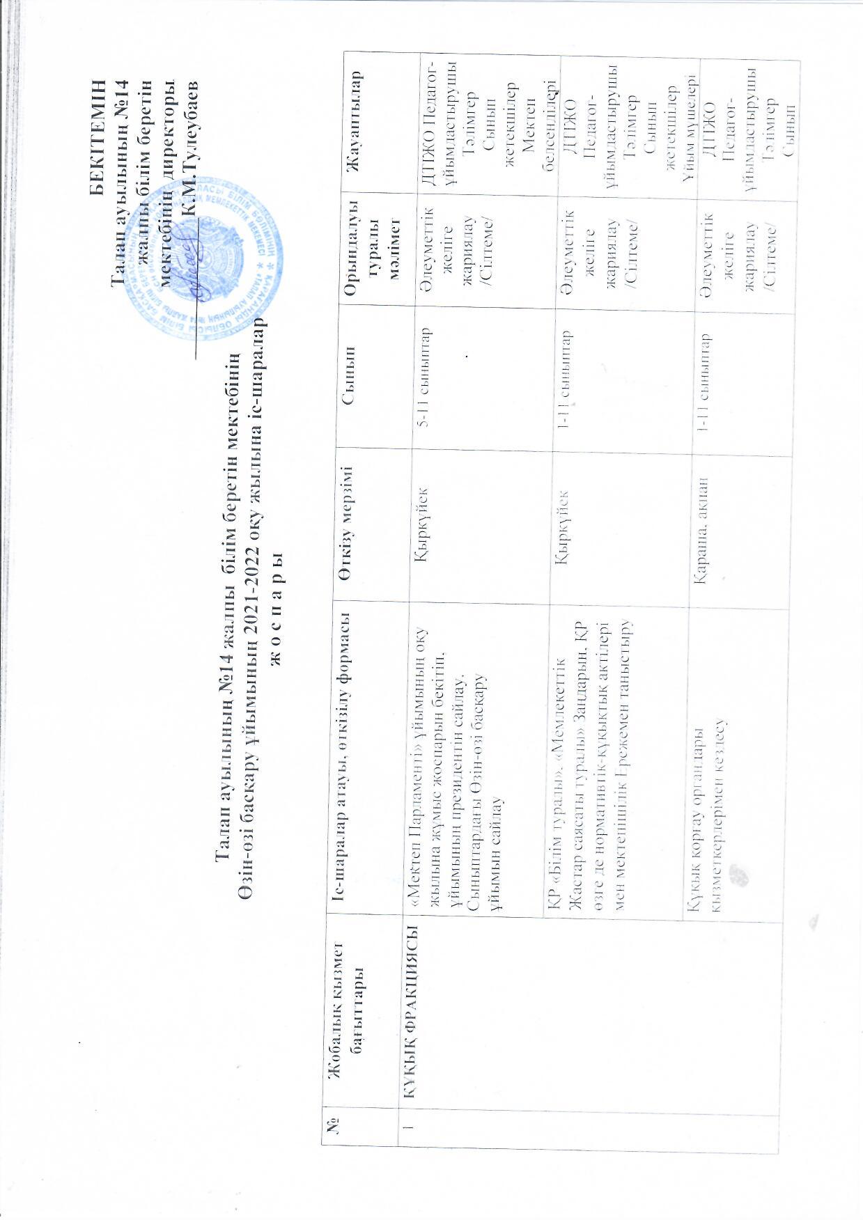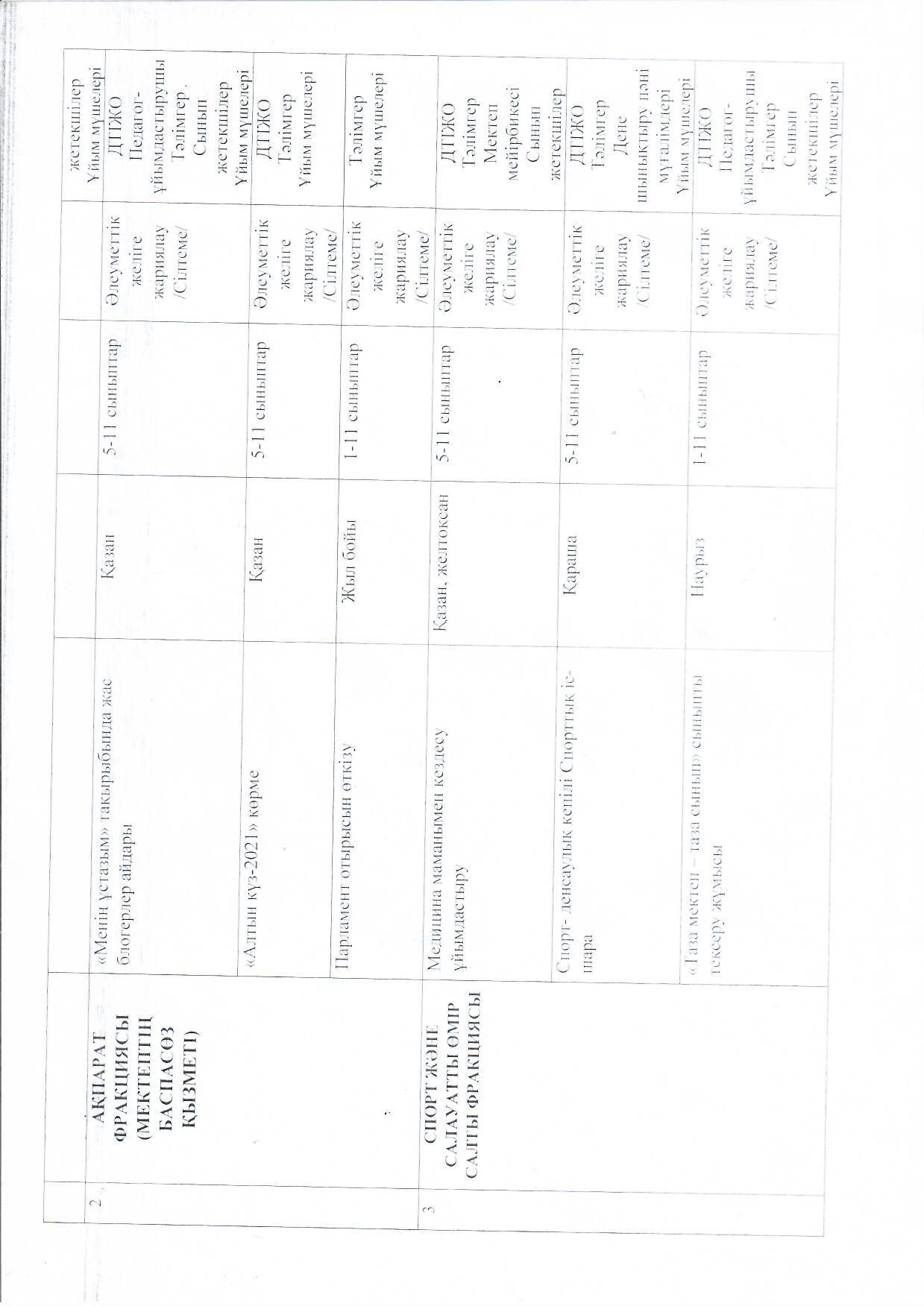2021-2022 оқу жылына іс шаралар жоспары
